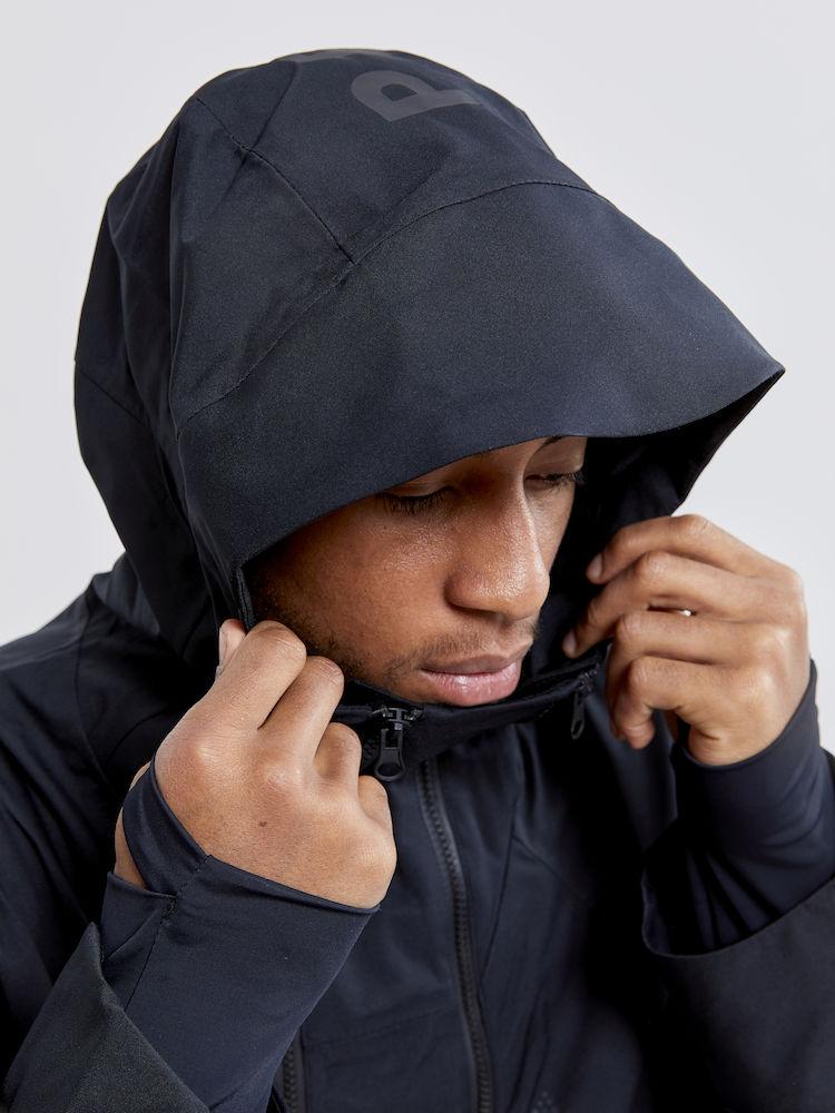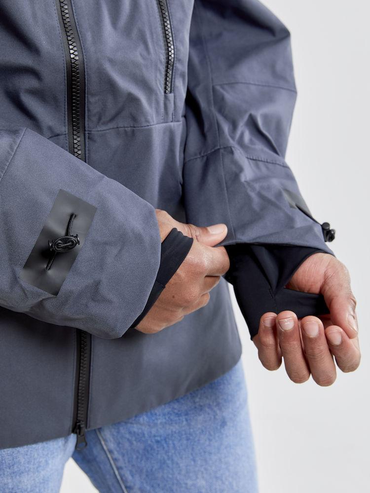 3-Lagen-Shelljacke mit getapten Nähten, Achselbelüftung, verstellbarer Kapuze und Ärmeltasche.