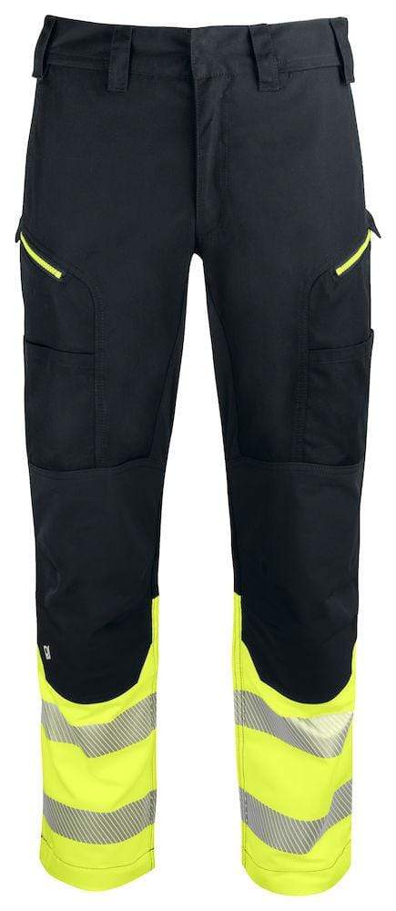 Modern geschnittene Arbeitshose mit Stretch-Einsätzen im Gesäss-, Schritt- und Kniebereichen. Oberschenkeltaschen auf beiden Seiten mit Reissverschluss. Breiter gearbeitete GUrtelschlaufen. Vorbereitungen fUr Hängetaschen (optional erhältlich PJ 9042). Segmentierte Reflektorstreifen.